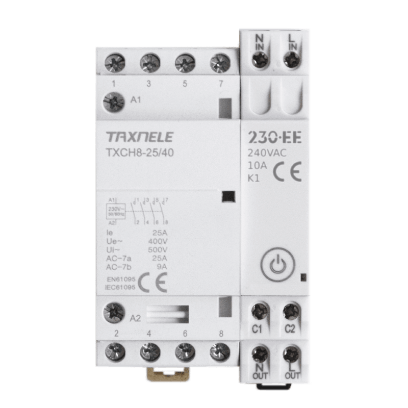 230.ee kontroller seinakontakti. Palun pane tähele, et selle kontrolleriga võib juhtida kuni 2000-vatiseid takistuslikke tarbijaid (näiteks elektriboilerit), aga see ei sobi võimsamate tarbijate ega mootorite juhtimiseks. Nende juhtimiseks palume kasutada kontrolleri ja kontaktori kombinatsiooni K1.
